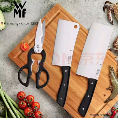 WMF刀具怎么样?wmf刀具?wmf刀具怎么样?第一次买wmf的刀具。德国的厨具名牌。京东秒杀时买了刀剪三件套。到货很快。刀剪的做工不错。标识清晰。刀剪都很锋利,感觉最合意的是切片刀,重量合适,手感很好。意外的是斩骨刀,比切片刀小且轻,真要试试才知道。。那么WMF刀具到底怎么样呢?下面我们来看看《WMF汇业专卖店》店铺所说的这款《WMF 德国福腾宝刀具套装 厨房切菜刀砍骨切片刀3件套中式厨刀西式厨刀三件套 Classical 刀具套装送剪刀》的用户评价: