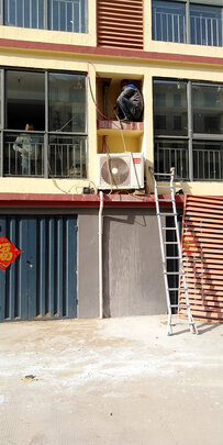 空调已安装好,等待调试,师傅安装很复杂,满意
