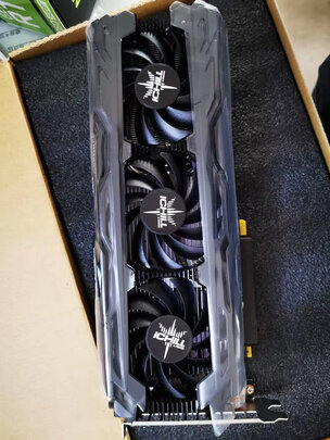 显卡很厚实,拿手里沉甸甸的,还没跑分。