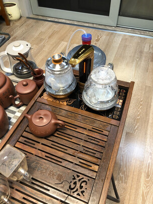 金灶茶具一直是我最优选择,这次告别茶车以前配的电陶炉和铜壶,打算选择玻璃的烧水壶,加上这个煮茶壶,一次搞定心中所想。玻璃透明无杂质,操作简单,从安装到使用,无需看说明书即刻搞定。就是感觉大了些。遗憾的是比茶车矮了一截,当然不影响使用。
