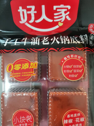 - 商品名称:好人家 手工牛油火锅底料360g 小块装小包装宿舍单身深夜煮面调料