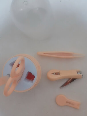 给宝宝买的指甲刀套装,目前只用了小剪子和小锉子,其他的要等宝宝大一点才能使用。