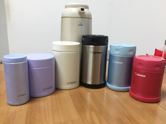 虎牌的东西真贵呀!紫色和米白色的保温杯还是促销活动买的花了770两个,蓝色小保温杯也是活动买的188元,另外我买了4个象印的焖烧杯和一个象印的热水瓶都没那三个虎牌的杯子贵,我只要是图虎牌的杯子手可以直接进杯子里面洗,而象印的里面用手洗不到,但保温很好,京东的服务真不错赞一个??