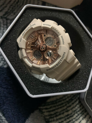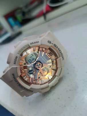 卡西欧手表怎么样?卡西欧手表怎么调时间?卡西欧手表的价格?计时准确:很喜欢的一款,做工精美:很精美,颜色也很好看,防水性好:有防水功能,试过还不错,佩戴美观:非常适合女生,风格百搭:穿什么衣服都好搭配,包装精美:包装很好,还有精美的外包装。。那么卡西欧手表到底怎么样呢?下面我们来看看《卡西欧东方专卖店》店铺所说的这款《卡西欧(CASIO)女表G-SHOCK/BABY-G防水防震双显多功能运动石英表学生手表女 GMA-S120MF-4A防水樱花粉》的用户评价: