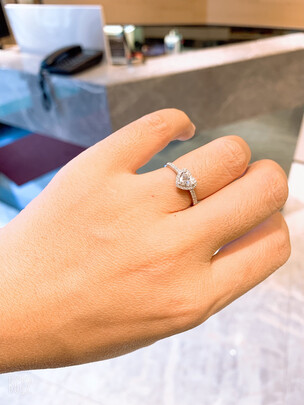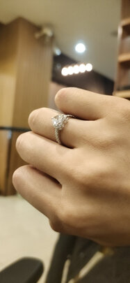 货已经收到,非常满意,颜色很亮,很白,仔细看了,也看不到什么杂质,朋友很喜欢,周围还有一圈副钻,感觉逼格满满,显得钻石更大了,镶嵌的也很认真,戒圈上也镶嵌着小钻石,物超所值,支持佐卡伊。
