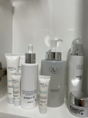 玉兰油我和妈妈都在使用,只是系列不同,很喜欢的一个牌子。夏天来了,希望护肤品可以有美白功效,换了水感透白一系列,搭配着精华液、面膜水、空气霜、乳液一起使用。