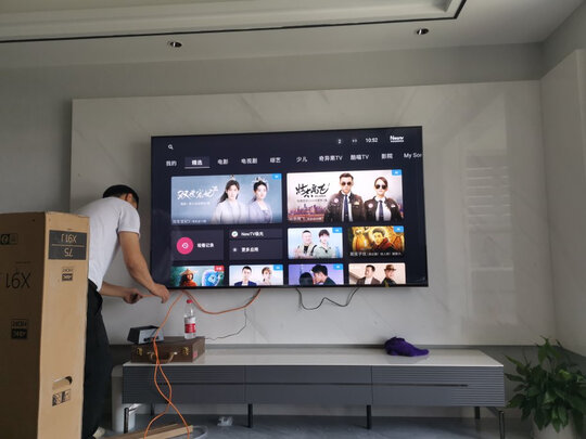 75寸好大,目前还没安装条件,到时候上墙再看看