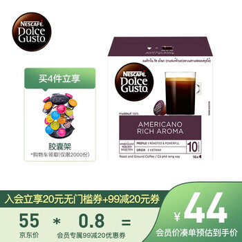 DOLCEGUSTO越南咖啡怎么样dolcegusto越南咖啡dolcegusto越南咖啡一直买一直买,根本停不下来啊。雀巢的胶囊咖啡再胶囊咖啡里算是非常好的了,品种多,口感好,从两年前买了胶囊咖啡机以后就一直享受到现在。有一次我好奇,用完以后剪开了胶囊,里面真的是咖啡粉,怪不得口感比速溶的好太多。。那么DOLCEGUSTO越南咖啡到底怎么样呢下面我们来看看《雀巢DolceGusto京东自营旗舰店》店铺所说的这款《越南进口 美式经典 雀巢多趣酷思(Dolce Gusto) 黑咖啡胶囊 研磨咖啡粉 16颗装》的用户评价: