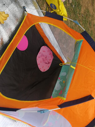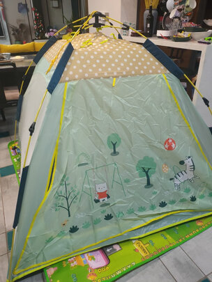 收到货了,发货速度快,送货速度也快,包装完好,没有任何破损。帐篷的质量还不错,轻微味道,晾晾应该就没事了,图案很可爱,帐篷里容纳3-4个人应该没问题,达到预期。娃很喜欢,进入帐篷后很兴奋,东看看西瞧瞧。