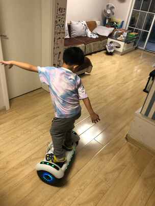 非常好上手,俩孩子一会儿就学会了,白色平衡车非常漂亮