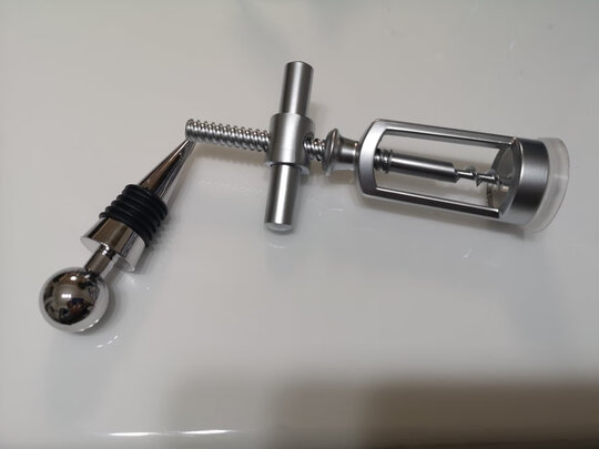 开瓶器非常的漂亮,手感非常的不一样,很重手,试了一下,非常的方便,瓶塞也非常好,值得入手