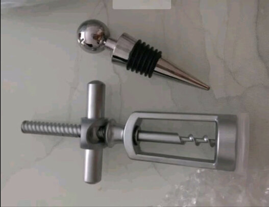 挺漂亮的开瓶器和瓶塞,开瓶器挺重,感觉直接应该很好,试用了一下,果然不错。而且开红酒的方式跟原来的还有点不同,挺好,满意!五分必须的!