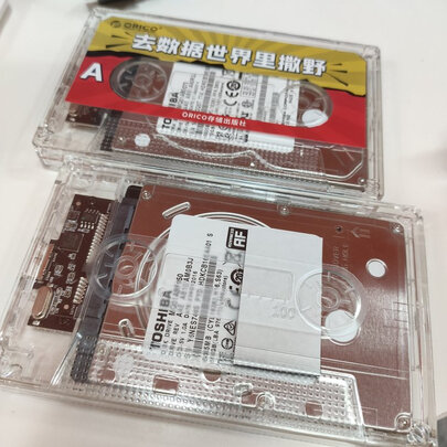 很有意思的一款产品,透明体,有贴纸,复古卡带设计,产品经理挺会玩的,再也不用拿着古老老套的硬盘盒了。推拉设计,不用螺丝。厚一点2.5英寸硬盘,不用那个海绵垫,直接装上卡稳。我一下子买了2只,预计以后还会再买。