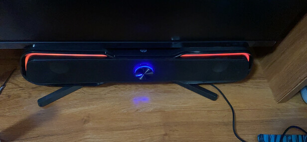 还不错,放在显示器下面刚刚好,音质还将就 反正听个响,我没那么多追求,要是灯光可以自己控制就更好了,这个灯光一直在自己切换