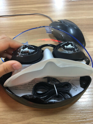 新买的泳镜一打开就有头发和很多灰尘缠在泳镜带上,产品的包装盒和宣传的不符,客服给的回复也大跌眼镜,怀疑生产环境和产品质量!产品是送人,所以感觉极其不好,差评!