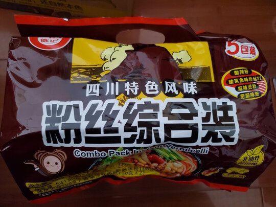 白家方便粉丝十几年前在南方上班的时候就喜欢吃,这次在京东上面是第二次购买,一直喜欢这款综合包装的,什么口味的都有:酸辣味的、麻辣味的、肥肠的、还有酸菜鱼味的,这些味都是我的最爱,煮的时候配上一个卤蛋或香肠,最后在出锅前再放上一些自己喜欢的蔬菜,一款豪华版的酸辣粉就出炉了。
