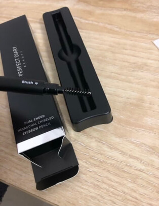 六角形眉笔,用起来很顺滑,节省画眉时间,笔的质地高档,摸起来手感很舒服,颜色我喜欢深棕色04号,不是特别黑,画起来眉毛很自然,后面还带小刷子,一体使用更方便,两边分别都标了英文,很好识别。包装特别好,一看就是正品,外面塑封,盒子里面有称底。物流也快,两天到货。
