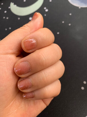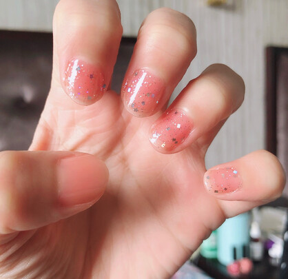 颜色很好看,而且牢固度不错,一天下来拔草,种花,洗碗,指甲也没花,而且指甲油还有淡淡香味,且速干,会回购