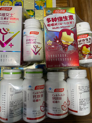 维生素片,钙片,适当补充,对身体有好处,年纪越来越大啦,要注意保养身体。保健品这个东西,不是一下子就能看出效果的,坚持下去,应该会有效果吧。