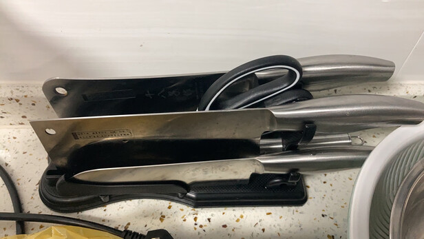 我以为剪刀和磨刀石也是一起的,原来没有啊,只有3把刀加一个刀架
