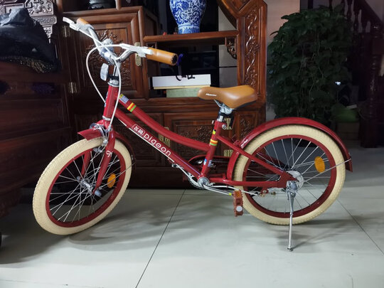 看了很多自行车,最后选择了飞鸽这个牌子的,老牌子的就是好。店家给了安装视频,很容易就安装好了,大红色的自行车特别漂亮,配色特别好看,小公主的感觉。车座位放低了,孩子脚正好够到地面,20寸的大小刚刚好。大人也能骑,试骑了一圈,车子很轻便,没有任何杂音,特别好骑。超级满意。而且快递也特别快,第二天就到啦,送货上门,很满意!