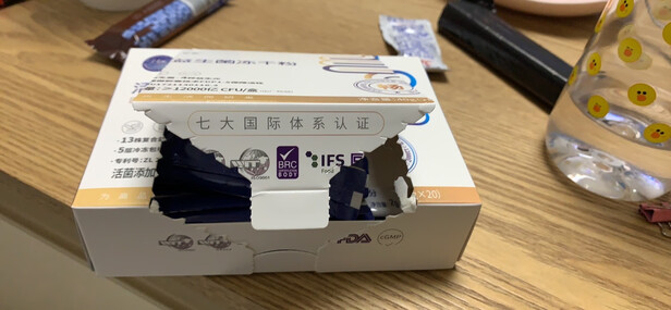 京东好快,晚上拍的,第二天就到啦,包装盒上有塑封膜,收到完好无破损,有一万2千亿的活菌添加量,对便秘有效,准备长期购买,希望店家多给优惠哦
