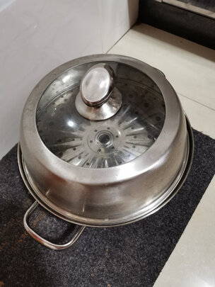 这款蒸锅厚度适中,预热速度较快。隆起的锅盖设计是我挑选的标之一,是为了放置馒头一类食品时候不被压的重要条件。但是锅把手配的螺丝偏短,必须的使劲压憋了那个圆形垫圈才能拧紧,这个是美中不足。