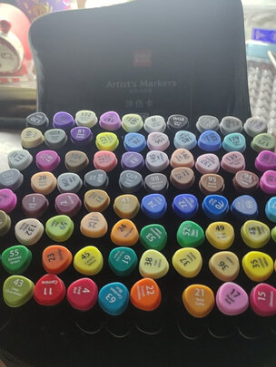 对比了好几家最终还是选择得力,很棒的彩色马克笔,值得推荐,没有什么刺鼻的味道,可以放心给孩子用,里面有放笔的格子那颜色一目了然孩子用也不会乱,上色也很好看,80个颜色对于刚学画画的宝宝很够用啦