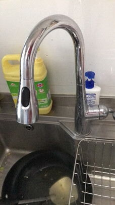 之所以换这个水龙头就是因为普通的水龙头洗锅的时候太费劲了。自从换上它之后,空间大了再也没有困扰,洗碗的工作也变的轻松许多。