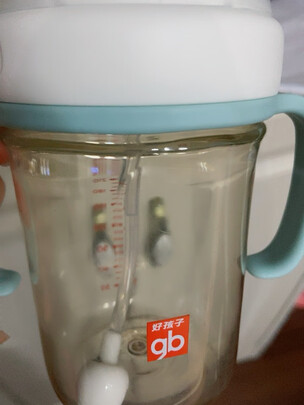 奶瓶整体的质量还是非常不错的,好孩子的质量放心有保障,奶瓶宽口设计,洗刷很方便,这款奶瓶设计唯一觉得不妥的地方,就是重力球连接,本来重力球设计就是让宝宝不再仰头喝奶,但这款重力球用大宽吸盘连着奶嘴,喝奶需要通过重力球吸到奶嘴与吸盘中间,然后才能喝到奶,宝宝喝到最后还是需要仰头