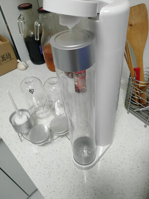 东西不错,不用电,很方便,气瓶很沉。就是个头很大,细长,高高的,做苏打水还是很方便的,就是做一两次气瓶就松了。需要紧紧才能用