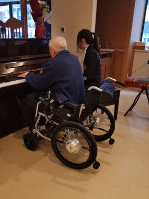 轮椅控制器灵敏,操作简单。轮椅看着单薄实际很有份量,不会轻飘飘的,坐上去稳当,放心。