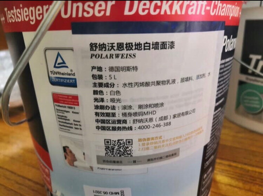 舒纳沃恩底漆怎么样用了感觉如何?舒纳沃恩底漆10L?舒纳沃恩底漆如何?舒纳沃恩这个牌子怎么样?舒纳沃恩油漆/涂料怎么样好不好?我们来看看《舒纳沃恩京东自营旗舰店》这款《舒纳沃恩 全效底漆5L 德国原装进口 水性内墙乳胶漆 封固抗碱防潮面漆底漆 油漆涂料》的用户评价: