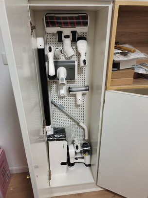 吸尘器颜值很高,先使用了缝隙刷头和桌面清理刷头,效果超好,机器拿手里也轻便,省时省力,现在续航可用1小时,觉得有些短,如果续航时间能达到2小时就完美了,准备等搬新家后再买个洗地机