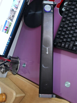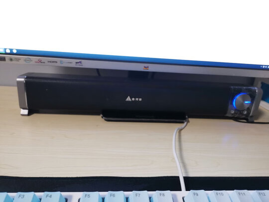 桌面不够大,这种条形音响正好把显示器下面空间利用起来,不占地方。音效方面么,毕竟百来块钱的东西,打打游戏看个综艺足够用了