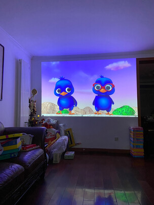 投影仪效果非常好,测试了白天、夜晚开灯时,投白墙都能看清。当然夜晚开灯情况下,画面效果堪比电视、完全实现家庭影院的梦想。