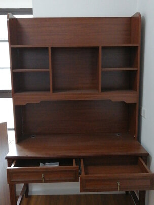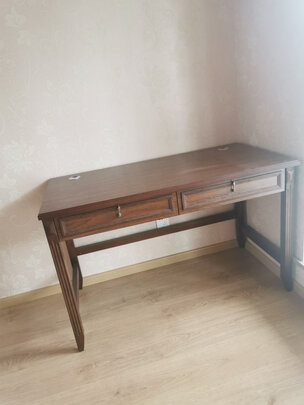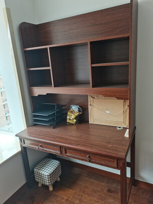 虽然没等到货就下调了两次价,对这个书桌我还是很满意的,简单古朴,没发现什么瑕疵,我觉得物有所值,假如不是餐桌不好旳体验,可能还会买好多这家的东东。
