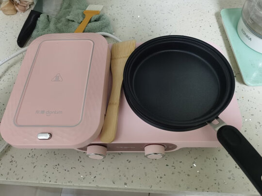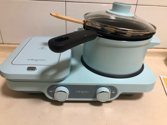 颜色也很好看 东西也挺好用的 两边都可以做早饭用 小锅很方便 熬点稀饭什么的一两个人的足够了 小煎锅也可以烙饼用 很方便 面包机倒是还没有尝试
