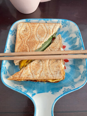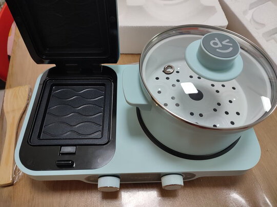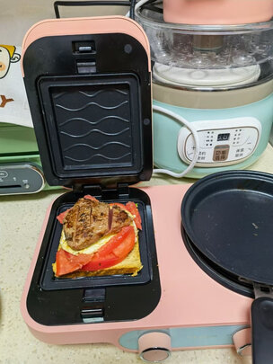 早餐机很好用,煎蛋、肉,蒸点东西很方便。做三明治也挺好用,烤盘再大一点就好了。做帕尼尼烤盘小了,只能切开烤。