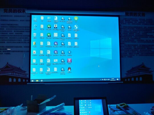 本来还担心培训室太亮,投影仪会看不清晰,还特地买了个玻珠的电子幕布,结果投影效果很满意