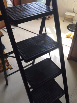 梯子很好看,而且也很实用,用起来很稳当,不怕摔下来,或者其他的包装完好。很好用质量不错哦。卖家发货快。服务态度也很好。 扎实漂亮站上去也很稳当,质量很好,原来超市买过一个,质量一般,这次特地网上买的真的不错 方便。以前换个灯泡什么的都得找人,现在有了它可以自己干了~