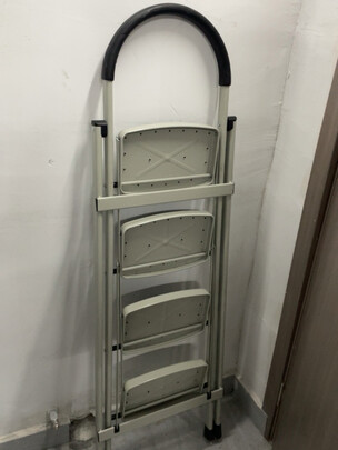 梯子不错, 4层梯很适合家用, 试用了一下, 感觉比较稳当,提子也不重, 可以轻松搞定春节清洁事情了, 快递小哥服务很好, 送到电梯口。