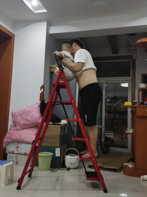 家里的灯泡坏了,太高了换不到,买个这个梯子换东西方便多了,我家小朋友也爱爬这个梯子,爸爸在上面爬,小朋友在下面爬,看着就温馨。