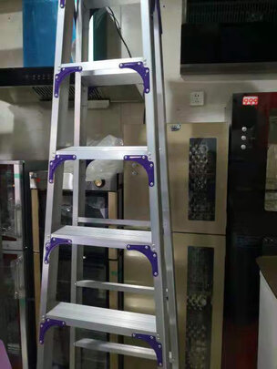 装修买来用的,很不错,快递送货上门也很方便,梯子也还很好看,脚上有橡胶圈不用担心划伤地板,顶上的扶手也有皮套,还行吧就是工具圈有瑕疵