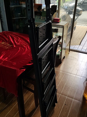 货收到了,外包装完好无损。人字梯挺结实,摸高够我家装吸顶灯。颜色虽然是黑色但看上去挺(雄壮),这次挑选它绝对不错。