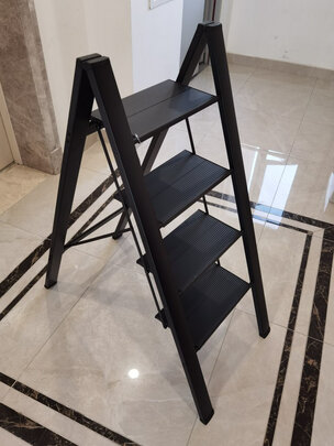 黑色的梯子非常有时尚感,很结实,用了加厚的料子,人站上去很稳当,还设置了放工具的架子,考虑的很周到。买的四层的梯子,站上去正好够到往吊柜里放东西。挺好用的,很稳,颜色我也喜欢。师傅装柜子用,我们家3米高,四级台阶的款式刚刚好可以摸到顶。细节也做的很好,践踏有防滑,旁边有放工具的地方,铝合金的材质,挺轻的。几十块钱很划算。居家必备的梯子,方便好用,颜色也好看,最重要的 是安全,性价比超高的一款梯子,连安装吊柜的师傅都说好用。京东送货也超快!自从有了这个梯子,堵空调洞,安窗帘等一个人全部轻松搞定。家里之前有个梯子用了十几年,在京东看了好久决定换一个,这个梯子很好,脚踏的部分宽大,放脚舒服不会担心太窄踩不住,而且支上很稳,材质也不沉,折叠起来不占地方,以后登高干活有保障了,非常好?