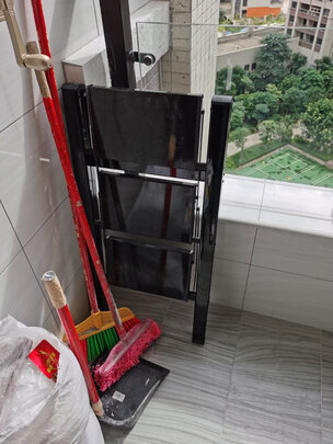 买来就用了,摘落地窗帘,高度正合适,不用时当置物架。