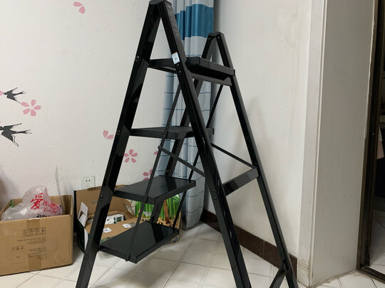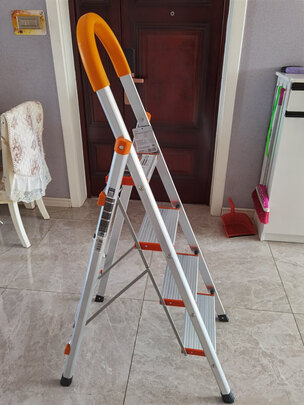 质量没有问题家用梯子,挂窗帘,擦卫生间,擦灯,这回方便了,用着没问题,安装很方便的,用的材料也挺厚实的,脚踩上去一点都不恍,很结实,收纳也方便,家用工地用都挺好的,还可以放花盒在上面,很实用,真是值得推荐的好东西,方便!