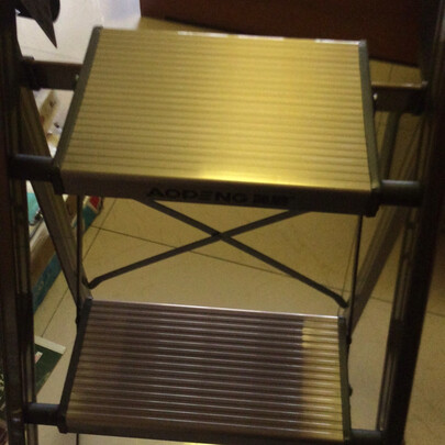 自营的产品还是牢靠,上网搜了家用梯的排行,然后在自营里挑选奥鹏的产品,觉得这款性价比最高,颜值也爆,京小哥也给力,速达,包装完好,辛苦,打开一看,地道,金属产品有点小划痕难免,不叫事,毕竟是家用工具,不是工艺品,不是用来把玩欣赏的,整体看来就俩字,漂亮。结实,比原来家里那个强多了,牌子啊,奥鹏,我这款四层梯,站到最上面,脑袋快贴房顶了,我家3米差一点的顶高,我177身高,往楼上打洞都够了,呵呵,稳当不晃,你说咱能不满意嘛,我得给朋友们推一个,真棒?。