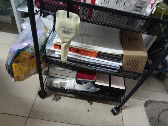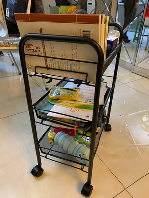 答:轮子可以锁住,不晃,东西整理的干净多了